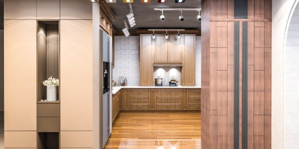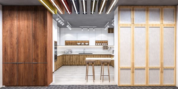 The need was to create a unique display of modular Kitchens and Cupboards showcasing varied styles and sizes. The architects/end consumers who walked had to be given a sense of exclusivity and variety across categories. The space was conceptualised as a European street with an arcade walkway facilitating movement in and out of different display zones.